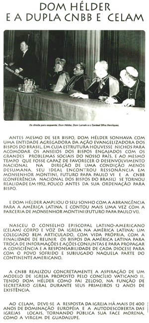"No Concílio Vaticano II, Dom Helder cumpriu um duplo papel, de animador e incentivador de propostas e iniciativas corajosas e proféticas, e de articulador incansável da maioria conciliar"